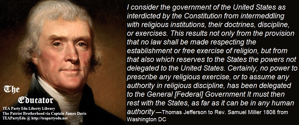 Thomas Jefferson concerning the 1st Amendment Religious Freedom (Click to enlarge)