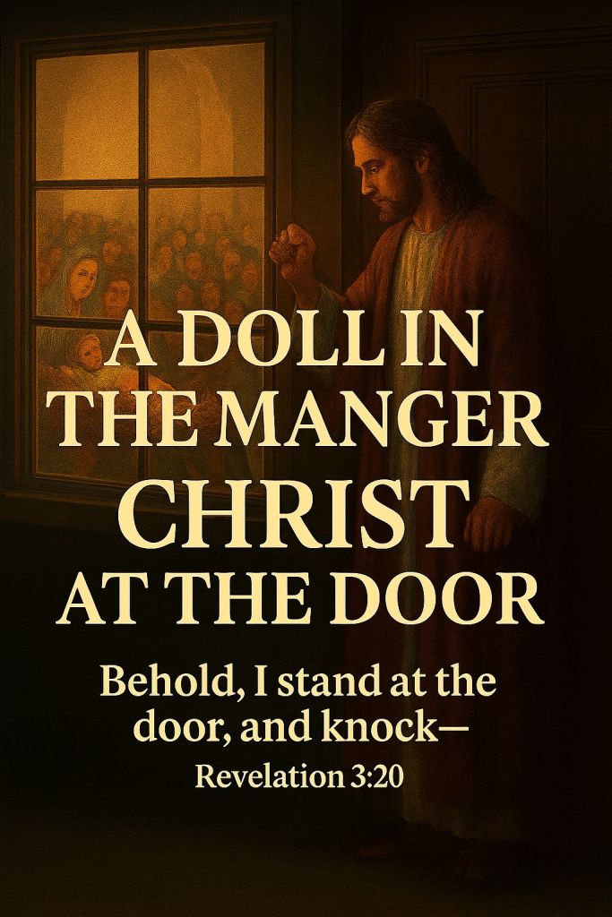 But outside, beyond the stained-glass glow, the wind howled. A figure stood at the door, unseen, unwelcomed. His breath rose in the cold night air as He knocked softly, waiting. His hands bore scars of nails. His eyes searched not for pageantry but for hearts.