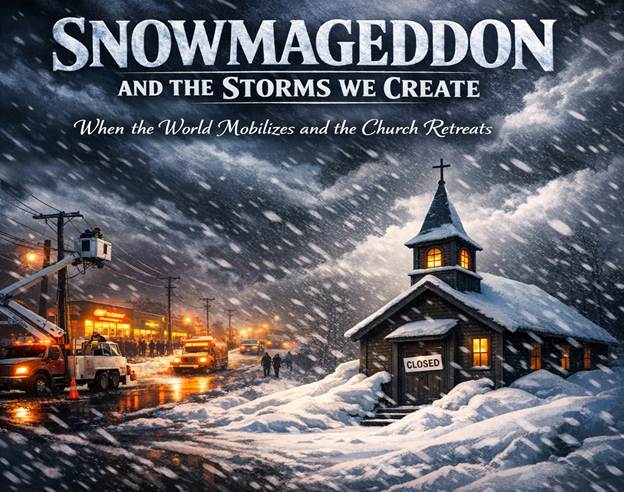 And maybe that is the quiet message hidden inside this winter’s theatrics. If a snowstorm can cancel our worship, perhaps what we call worship was never the thing God asked for. If a weather system can scatter the saints, perhaps the gathering was never rooted in the Spirit. If the church retreats while the world mobilizes, maybe we have forgotten that the Kingdom work is still work. The One who called us did not limit His commission to clear skies.